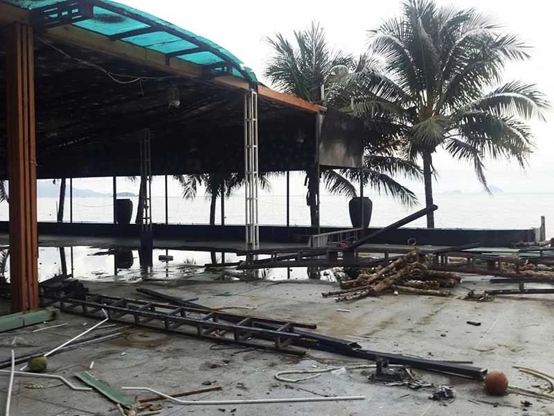 Nhà hàng Bốn Mùa đang được tháo dỡ để chỉnh sửa theo phương án kiến trúc mới, khắc phục việc chắn tầm nhìn ra biển. Ảnh: TẤN LỘC