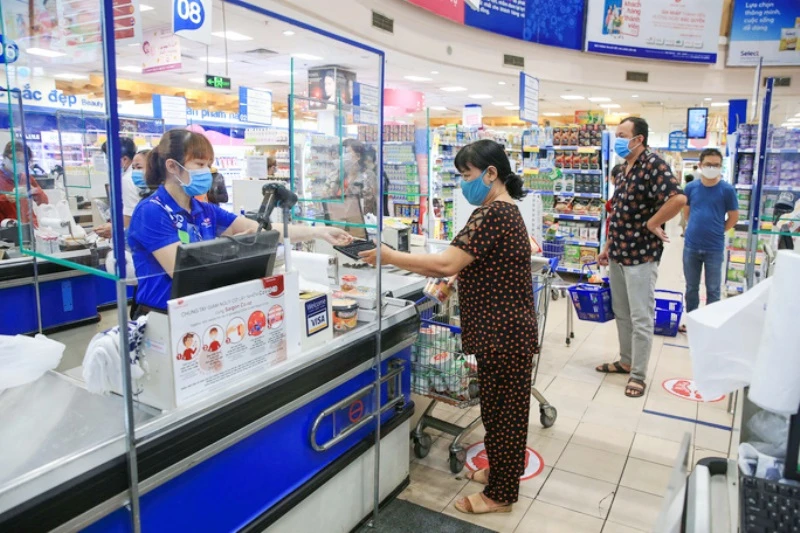 Người dân mua nhu yếu phẩm tại siêu thị Co.opmart Phú Lâmm, quận 6, TP.HCM. (Ảnh: Báo NLĐ)