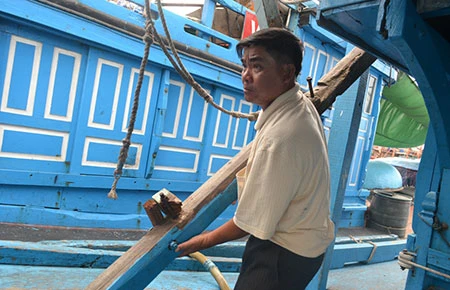 Vừa trở về sau gần một tháng đánh bắt và đấu tranh bảo vệ chủ quyền trên vùng biển Hoàng Sa, thuyền trưởng tàu ĐNa 90235 Trương Văn Hay (quận Thanh Khê, TP Đà Nẵng) gấp rút sửa chữa tàu, chuẩn bị lương thực, dầu, đá… lên đường trở lại bám ngư trường truyền thống.