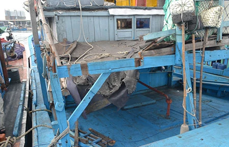 Con tàu bị đâm gãy phần đuôi. Ảnh: TT