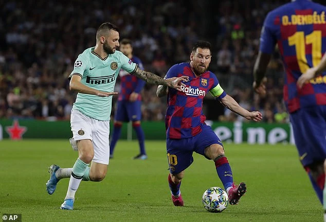 Messi luôn bị hậu vệ Inter theo rất chặt mỗi khi anh có bóng.