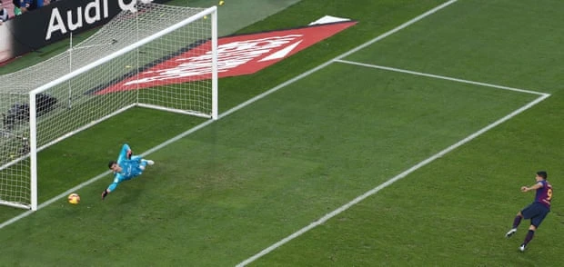 Suarez dễ dàng có bàn thắng trên chấm 11 mét.