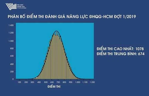 Phổ điểm thi đánh giá năng lực đợt 1 của ĐH Quốc gia TP.HCM.