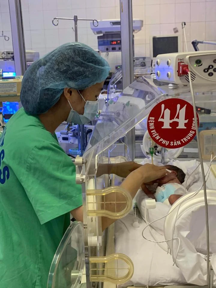 Bé Đỗ Bình An được chăm sóc cách ly đặc biệt tại BV Phụ sản Trung ương. Ảnh: HÀ PHƯỢNG