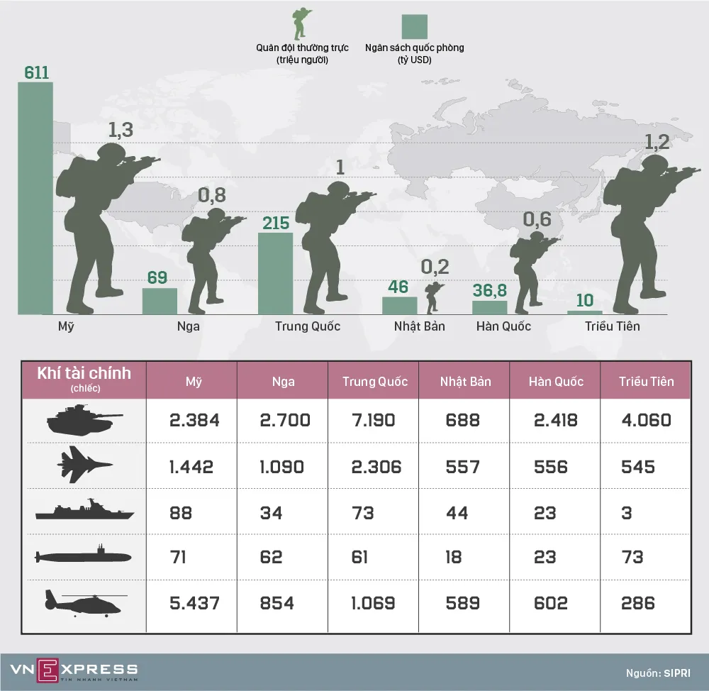 Sức mạnh quân sự Triều Tiên so với các cường quốc khác