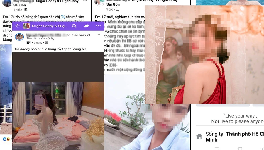 Ngày 17-6, trong nhóm “Sugar Daddy & Sugar Baby Sài Gòn” (hơn 30.000 thành viên), tài khoản Huy Hoàng đăng tải bài “tuyển sugar baby” với yêu cầu phải lớn tuổi hơn mình. “Em 17+, do hứng thú quen các chị “máy bay” nên mò vào đây xem có chị nào cần “phi công” không ạ” - nội dung bài viết do tài khoản Huy Hoàng đăng tải kèm theo đó là ba hình ảnh của mình cùng yêu cầu “chỉ cần trắng và xinh là được”.