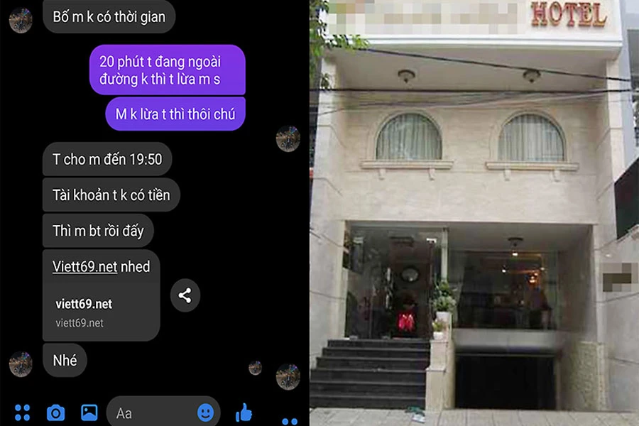 Một sugar daddy sau khi gặp “con gái nuôi” ở khách sạn thì quay lại nhắn tin tống tiền kèm hình ảnh khách sạn nơi gặp nhau. Ảnh: NGUYỄN YÊN