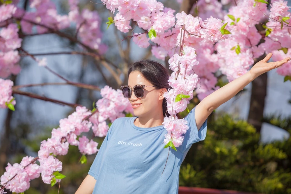 Tạo dáng bên anh đào hồng, Ngọc Anh - du khách đến từ TP.HCM hào hứng: “Bà Nà vốn đã nổi tiếng với muôn hoa nhưng năm nay đến thấy lại chẳng giống với năm ngoái, đẹp hơn, rực rỡ và ấn tượng hơn nhiều. Nói chung, đến hoài rồi mà không chán”