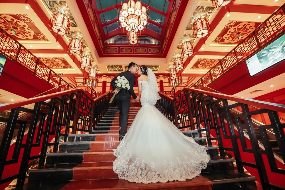 Một không gian kiến trúc châu Á đặc trưng mở ra ngay từ nhà ga cáp treo Nữ Hoàng lộng lẫy với các chi tiết tinh xảo, bắt mắt được sơn son thếp vàng. Âm hưởng kiến trúc cung đình Huế đã khơi nguồn cảm hứng cho công trình đặc biệt này.
