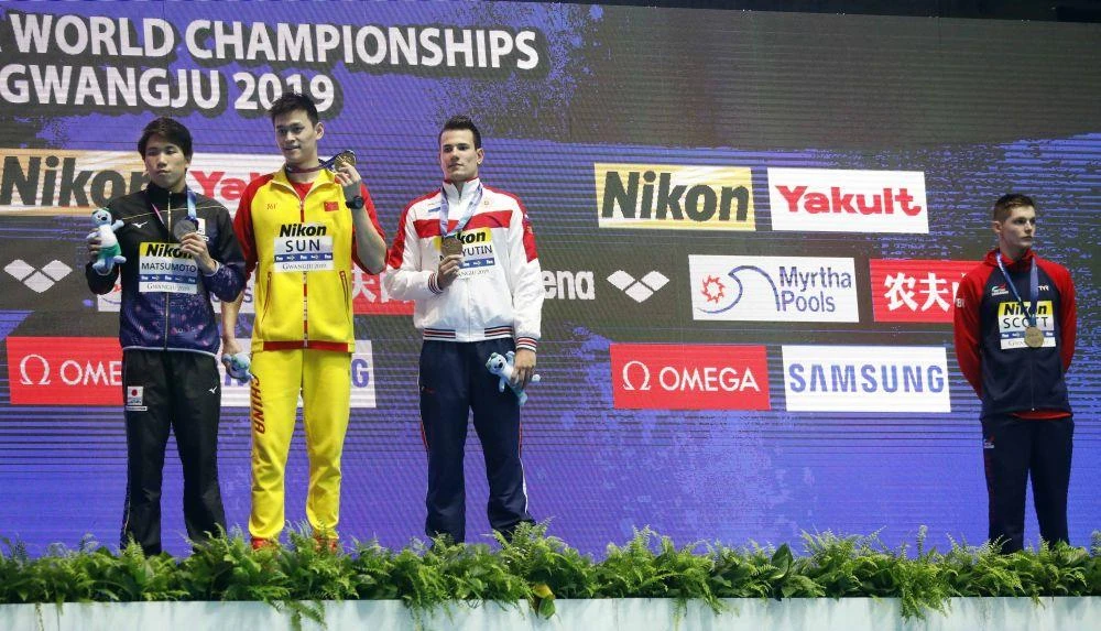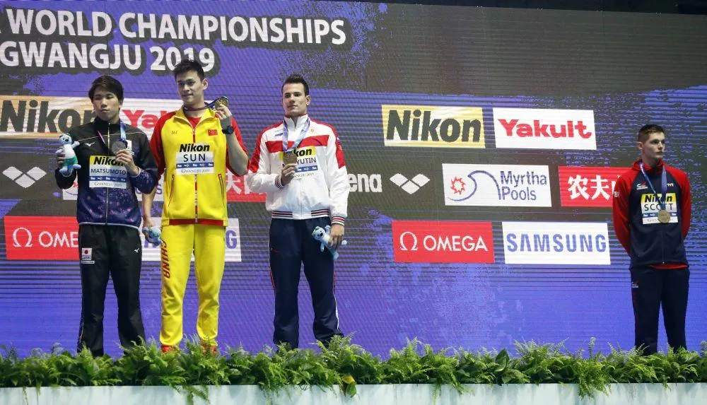 Sun Yang hiện từng 11 lần vô địch thế giới, tranh tài tại Hàn Quốc dưới sức ép liên quan đến việc anh sử dụng búa đập vỡ mẫu thử doping tháng 9-2018. Hiệp hội Các môn Thể thao dưới nước (FINA) cho phép Sun dự giải trong khi Cơ quan Phòng chống Doping Thế giới (WADA) kiện Sun lên Tòa án trọng Tài Thể Thao (CAS) và anh sẽ ra điều trần vào tháng 9 tới.