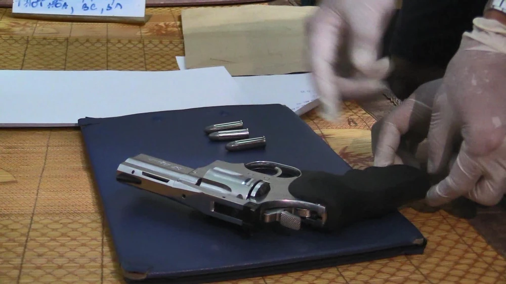 Khẩu súng rulo và 3 viên đạn được thu giữ cùng với số ma túy.