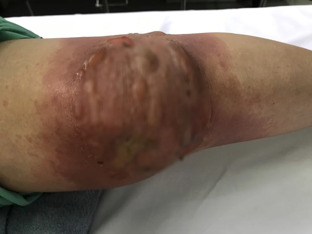 Chiều 12-5, Bệnh viện (BV) Chợ Rẫy (TP.HCM) cho biết vừa tiếp nhận bệnh nhân nữ VTH (sinh năm 1963, ngụ Lâm Đồng) bị sưng nề, tấy đỏ, phỏng rộp vùng da xung quanh hai khớp gối.