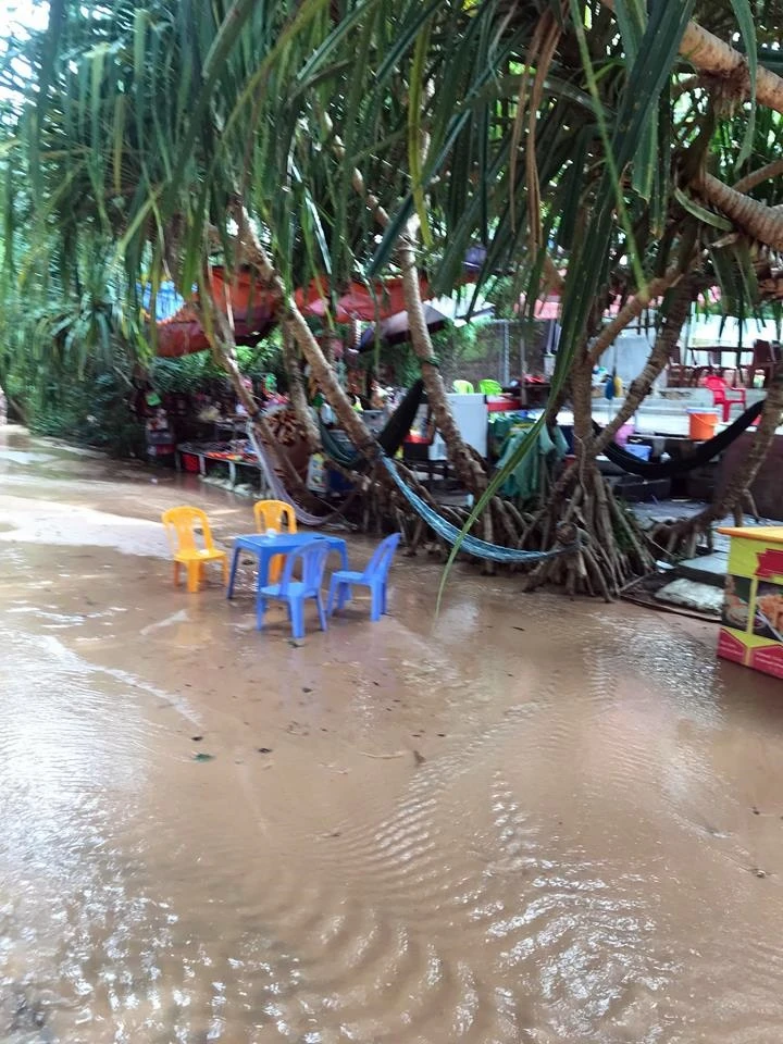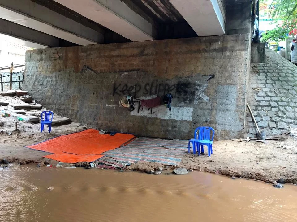 Bàn ghế được đem xuống kê ngay dưới suối. Ảnh: PHƯƠNG NAM