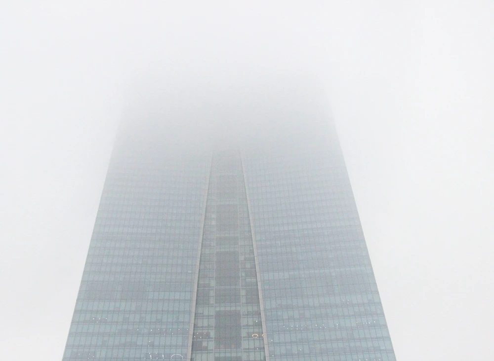 ...ngọn tòa nhà chìm sâu trong lớp sương, không thể nhìn thấy