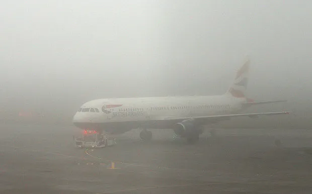 Sương mù bất thường đã khiến cho hàng chục chuyến bay bị hủy hoặc hoãn trên khắp các sân bay ở châu Âu những ngày qua. (ảnh: Telegraph)