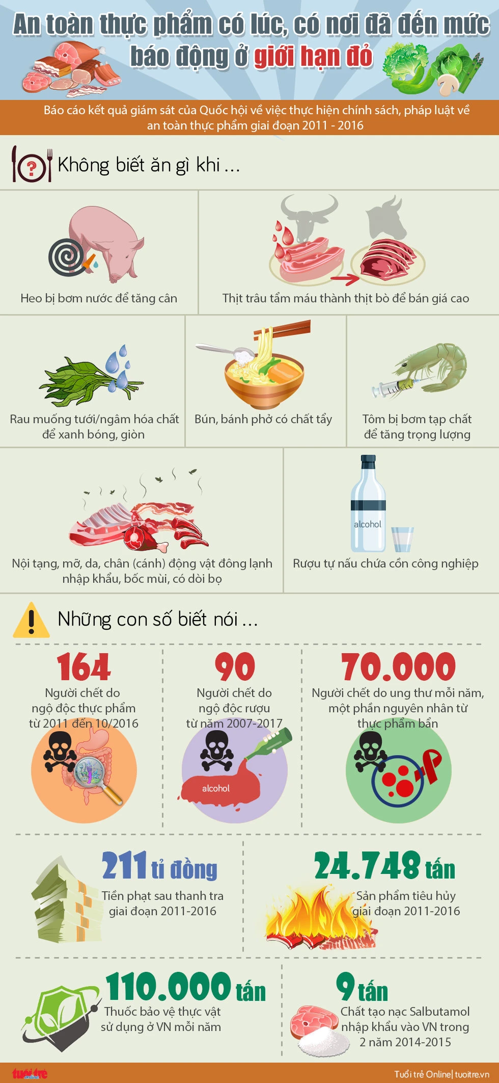 Hôm nay (5-6), Quốc hội sẽ dành cả ngày thảo luận việc thực hiện chính sách, pháp luật về an toàn thực phẩm giai đoạn 2011-2016. Cùng nhìn lại nỗi lo thực phẩm bẩn luôn là tâm điểm năm năm qua.