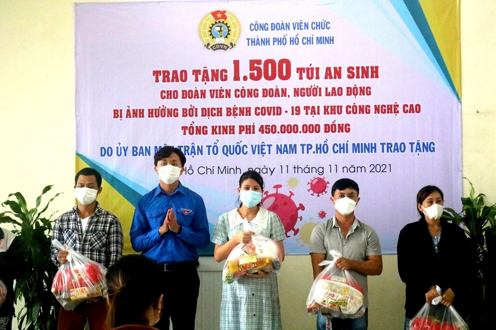 Chiều 11-11, Ban thường vụ Công đoàn Viên chức TP.HCM đã trao tặng 1500 túi quà an sinh cho công nhân lao động tại Khu Công nghệ cao bị ảnh hưởng bởi dịch COVID-19. Mỗi túi quà trị giá 300.000 đồng, do Ủy Ban Mặt trận Tổ Quốc Việt Nam TP.HCM hỗ trợ.
