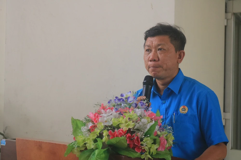 Ông Trần Đoàn Trung, Phó Chủ tịch Thường trực Liên đoàn Lao động TP.HCM phát biểu tại chương trình. Ảnh: KHÁNH CHI