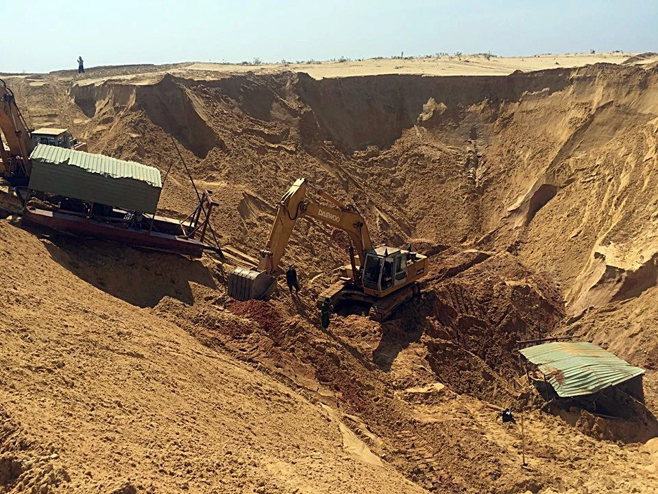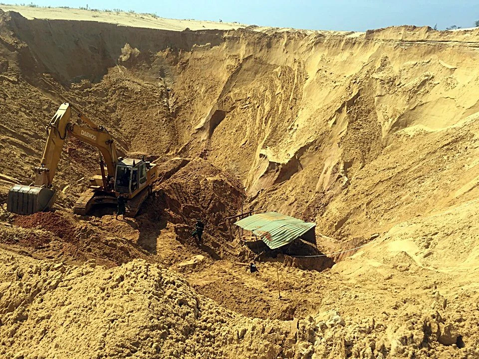 Theo thông tin ban đầu, ông Trần Cao Vinh, 49 tuổi, quê Bình Định xuống hố khai thác sâu khoảng 30 m xịt nước vào cát cho cát trụt xuống để máy hút lên đãi quặng. Tuy nhiên, khi đang xịt nước thì cát đổ sụp xuống, chôn vùi nạn nhân.