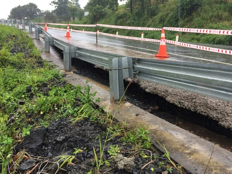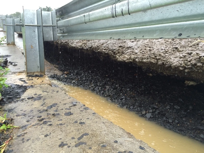 Ngoài ra, khu vực sạt rất rộng, chạy sâu xuống chân taluy âm làm một lượng đất đá khổng lồ bị đẩy xuống bên dưới gây đứt cáp quang, gãy đổ trụ điện.