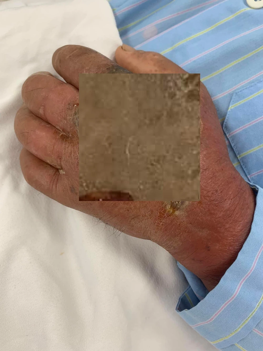 Hiện tại, bệnh nhân đang trong tình trạng suy đa phủ tạng, vết thương do rắn cắn bị hoại tử, nhiễm trùng nặng nề, đang được điều trị và chăm sóc tích cực.
