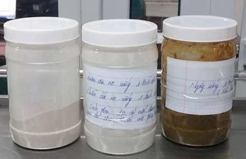 Những lọ thuốc Đông y không nhãn mác này đã khiến một bệnh nhân tử vong. (Ảnh do BS Nguyễn Trung Cấp cung cấp)