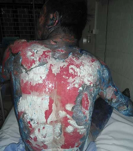 Bệnh nhân bị trợt da toàn thân do ngộ độc thuốc Đông y. Ảnh: DL