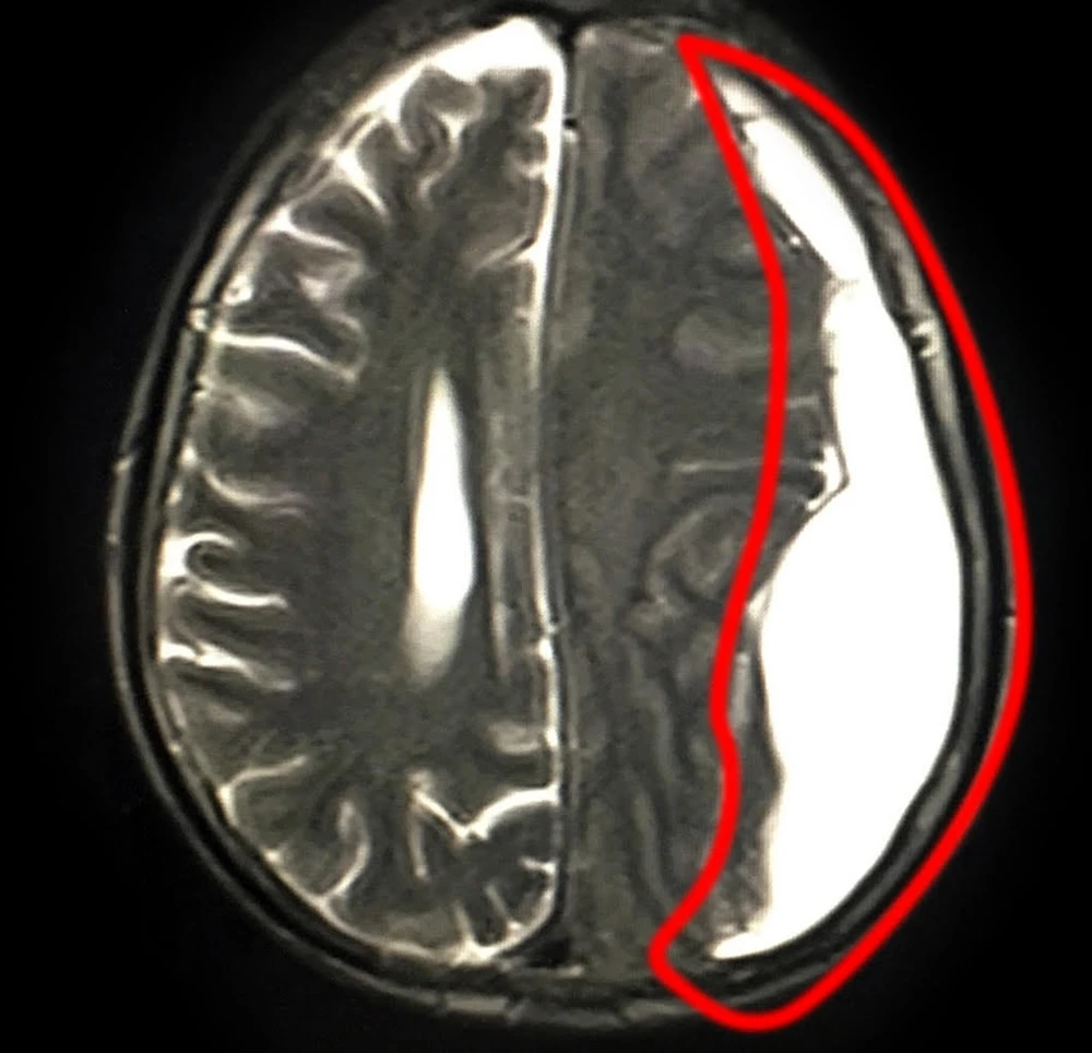 Kết quả chẩn đoán ghi nhận ông M. bị tụ máu dưới màng cứng mạn tính bán cầu trái. Ảnh: VĂN PHỤNG