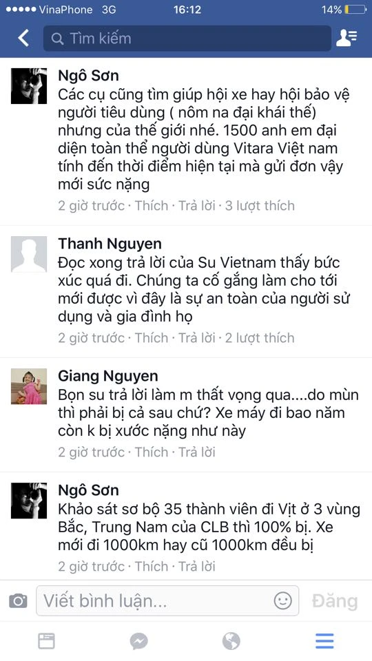 Phản ứng của khách hàng trên Fanpage của New Vitara Việt Nam Club
