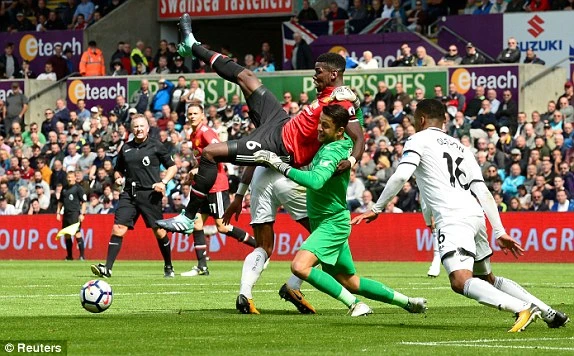 Phút 82, lại là Mkhitaryan kiến tạo cho Pogba thoát xuống bấm bấm qua đầu thủ thành Fabianski nâng tỉ số lên 3-0 cho MU. Đến phút 84, Pogba có pha đáp lễ bằng đường kiến tạo cho Martial sút bóng kỹ thuật vào góc xa ấn định chiến thắng 4-0 cho MU.