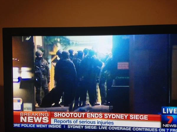 Đêm 15-12 (giờ địa phương), từ bên trong quán cà phê, nơi tên khủng bố đang giam giữ gần 21 con tin, bất ngờ phát ra tiếng nổ lớn, buộc cảnh sát phải quyết định ập vào hiện trường để khống chế kẻ bắt cóc.