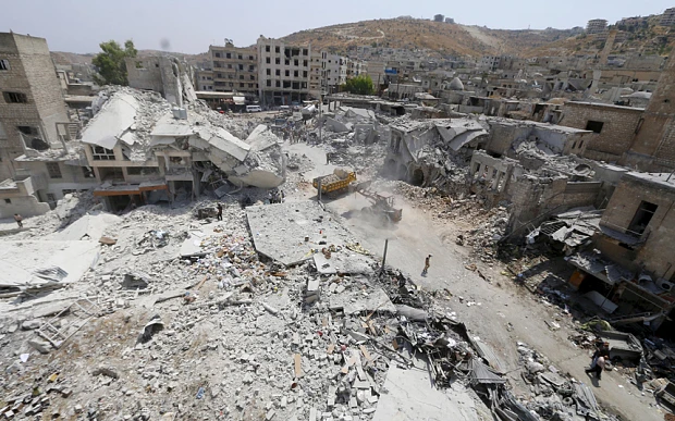 Khu chợ tan hoang sau khi máy bay của quân đội Syria đột ngột rơi trúng (ảnh: Reuters)