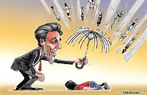 Kế hoạch hòa bình Syria (Syrian peace plan) theo biếm họa của Sabir Nazar (Pakistan)