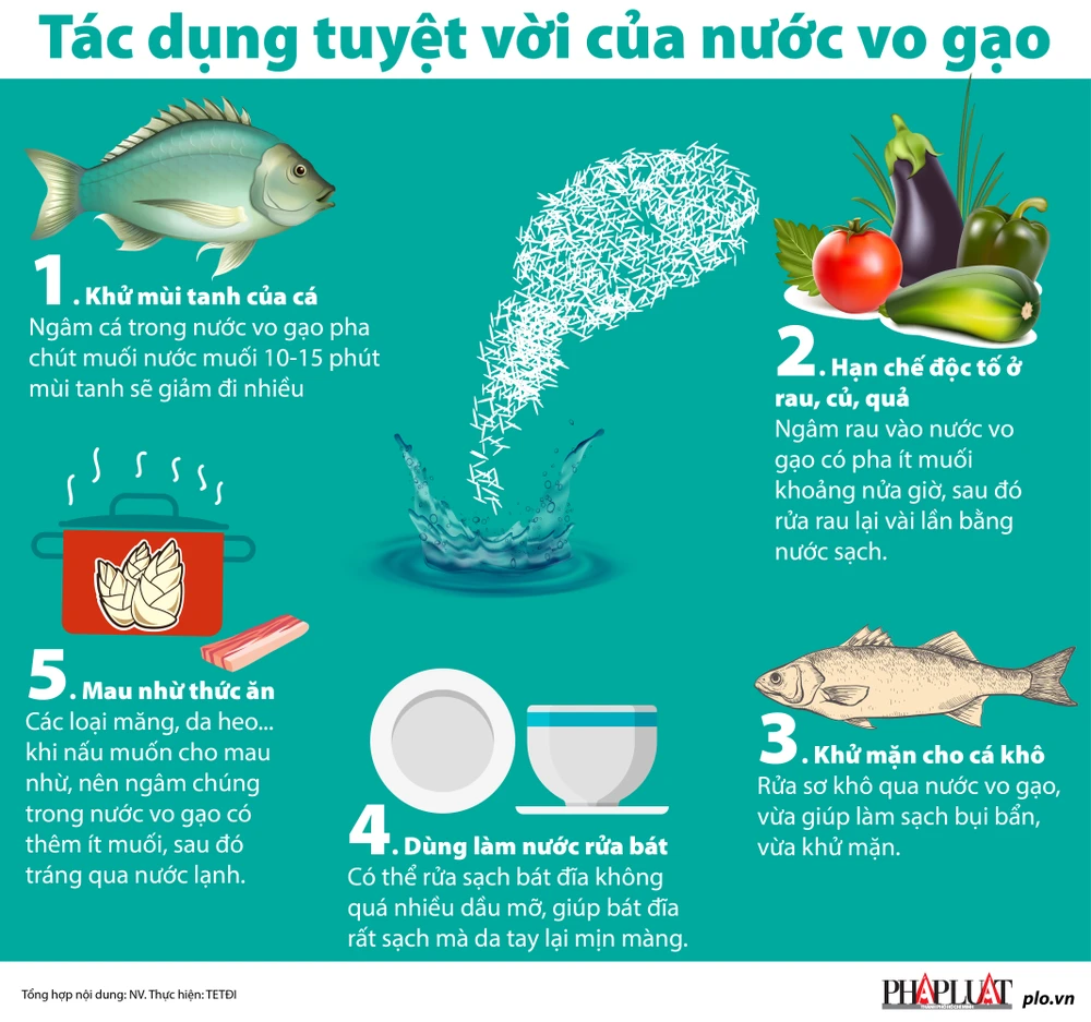 (PLO)- Hạn chế độc tố, khử mùi tanh... là những tác dụng tuyệt vời của nước vo gạo.
