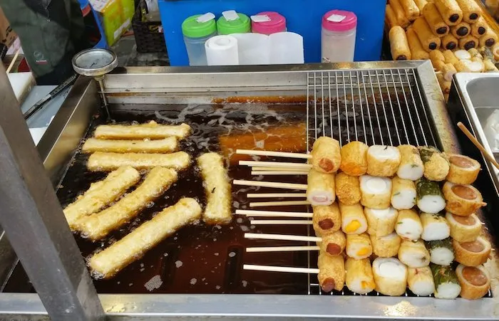 Nhiều bạn sinh viên, học sinh thường dùng những thức ăn như cá viên chiên, bò viên chiên,… bán ngoài đường. Ảnh: Internet