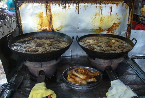 Đa số giới trẻ, đặc biệt là những bạn sinh viên, học sinh thường dùng những thức ăn như cá viên chiên, há cảo chiên, khoai lang chiên,… bán ngoài đường, những thức ăn này có một số nơi, người bán hay dùng dầu chiên đi chiên lại có khi đến hơn 10 lần, có nơi người bán cẩn thận lọc dầu ra vì sợ để dầu có cặn nhiều quá người dùng sẽ sợ, có nơi họ sử dụng những chảo chiên màu đen để đánh lừa mắt người tiêu dùng. Khi được hỏi về tác hại của việc dùng dầu chiên đi chiên lại một sinh viên Trường ĐH Công nghiệp thực phẩm TP.HCM cho hay “em cũng biết là người bán dùng dầu chiên đi chiên lại nhiều lần nhưng nghĩ lâu lâu mình mới sử dụng một lần nên chắc cũng không có tác hại gì nhiều”, một sinh viên khác cho biết “em cũng đoán được họ dùng dầu chiên nhiều lần nhưng khi bán họ bày bắt mắt và mình cũng không thấy nên yên tâm ăn mà không lo lắng gì lắm”.