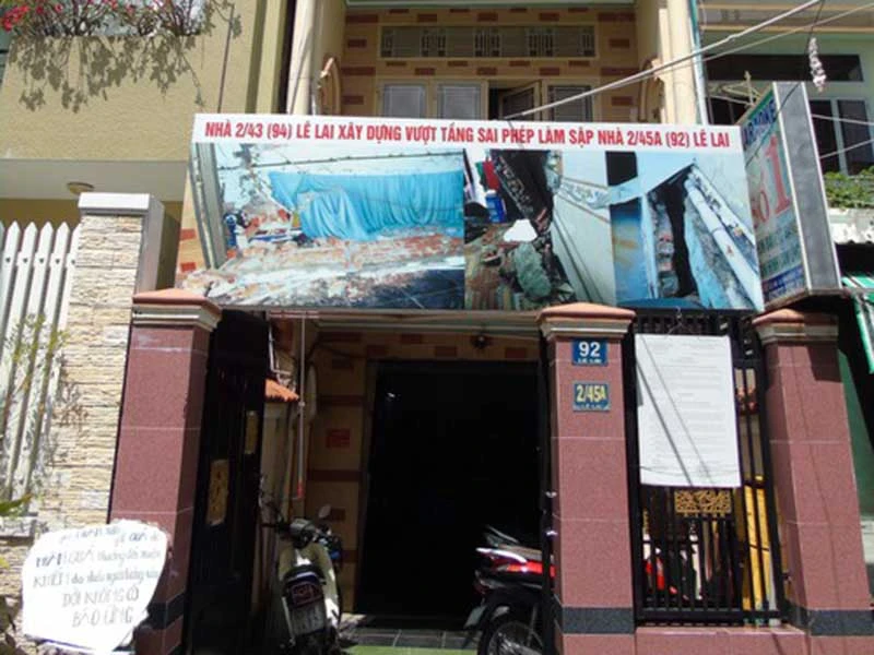 Bà TTL khởi kiện hàng xóm kế bên là vợ chồng ông TQT vì cho rằng ông T. xây nhà làm ảnh hưởng đến nhà mình.