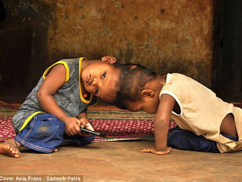 Cặp song sinh được biết là bé Jaga và Kalia (28 tháng tuổi, ở Ấn Độ) sinh ra với hội chứng Craniopagus với phần đầu dính liền nhau ở đỉnh sọ.
