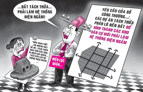 “Trong quá trình tách thửa đất chia cho các con, tôi liên hệ với Công ty Điện lực quận Thủ Đức để xin kéo điện thì điện lực yêu cầu tôi phải lập hệ thống điện ngầm khiến tôi hết sức bất ngờ. Không hiểu tại sao xung quanh là hệ thống điện nổi, nhà tôi lọt giữa lại bắt làm điện ngầm” - bà H. (quận Thủ Đức, TP.HCM) kể.