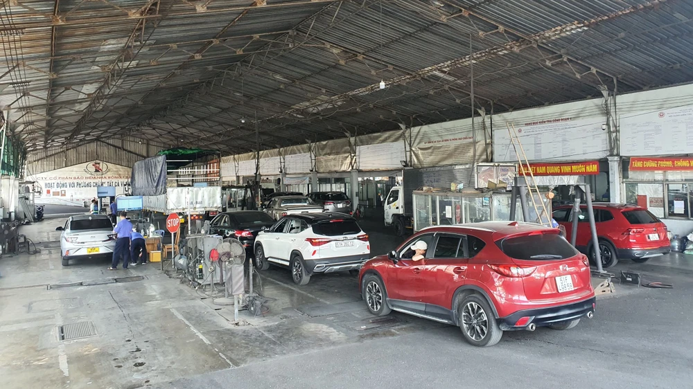 Ghi nhận của PLOsáng 3-3, tại Trung tâm Đăng kiểm (TTĐK) 50-03S, phường Hiệp Bình Chánh, TP Thủ Đức, từ sáng sớm lượng ô tô đến kiểm định đã đậu kín bãi xe dù tại đây, bãi đậu xe khá lớn so với nhiều TTĐK khác.