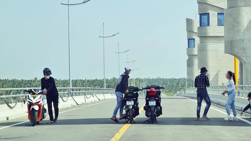 Bên cạnh những người đến công trình để tham quan, hóng mát, có rất nhiều thanh niên đến đây để "khoe xe". Ảnh: MỘC LOAN