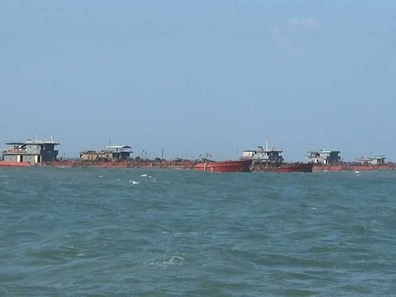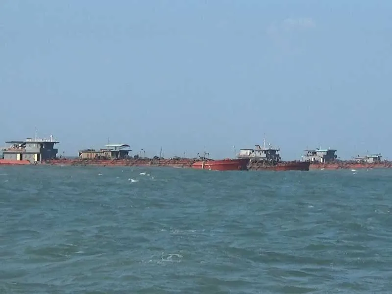 Các tàu âm thầm chia nhau khu vực hoạt động như có thỏa thuận trước. Trung bình mỗi sà lan dùng khoảng 25 vòi hút công suất lớn, cố định cho hướng xả nước vào giữa boong. Qua quan sát, hầu hết các sà lan này đều không thấy số hiệu. Một số sà lan có số chủ yếu mang mã Hải Phòng, Hải Dương…