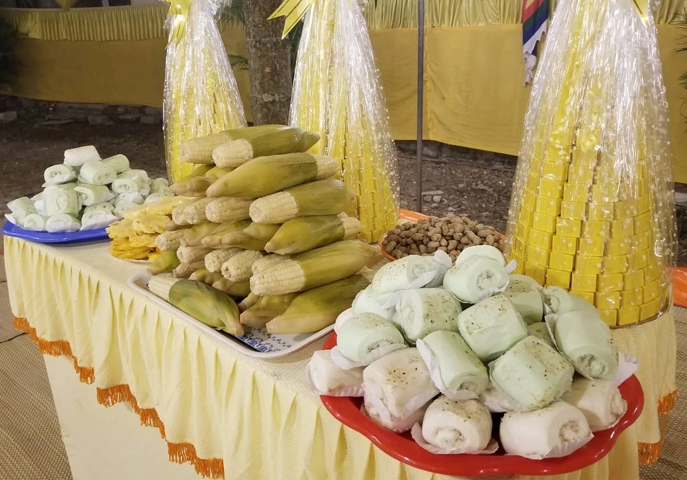 Lễ vật cúng chủ yếu là ngô, lạc, cháo hoa, chè,... Ảnh: N.ĐẠT