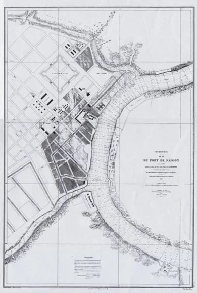 Bản đồ cảng Sài Gòn 1863 của Chuẩn Đô đốc Grandière.
