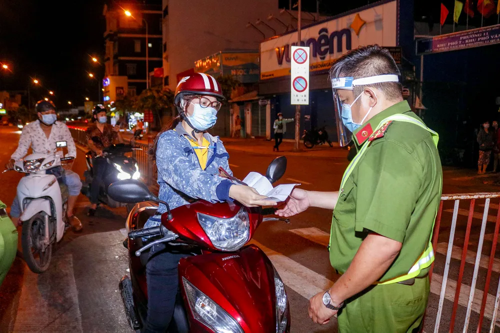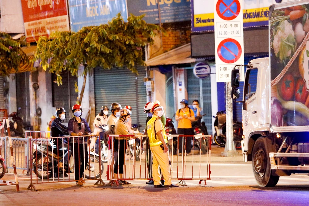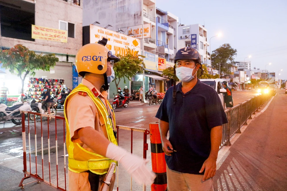 Theo ghi nhận, chốt kiểm soát dịch tại nút giao Phạm Văn Đồng – Phan Văn Trị từ 22h, có lực lượng chức năng hướng dẫn người và phương tiện qua chốt. Một số trường hợp người dân đi từ quận Bình Thạnh qua quận 12 cần đi ngang Gò Vấp thì được lực lượng trực chốt hướng dẫn đi đường vòng.