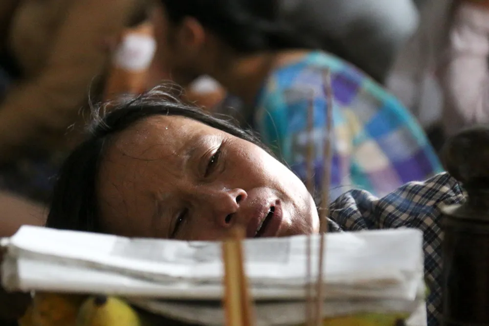 Ngồi bên quan tài của chồng, chị Trương Thị Chi đau đớn tột cùng, kêu khóc thảm thiết. Những người hàng xóm chứng kiến đều chảy nước mắt xót thương. “Gia cảnh nhà anh Bình quá khó khăn, rồi đây không biết những người thân của anh sẽ sống thế nào” - một người hàng xóm nói.