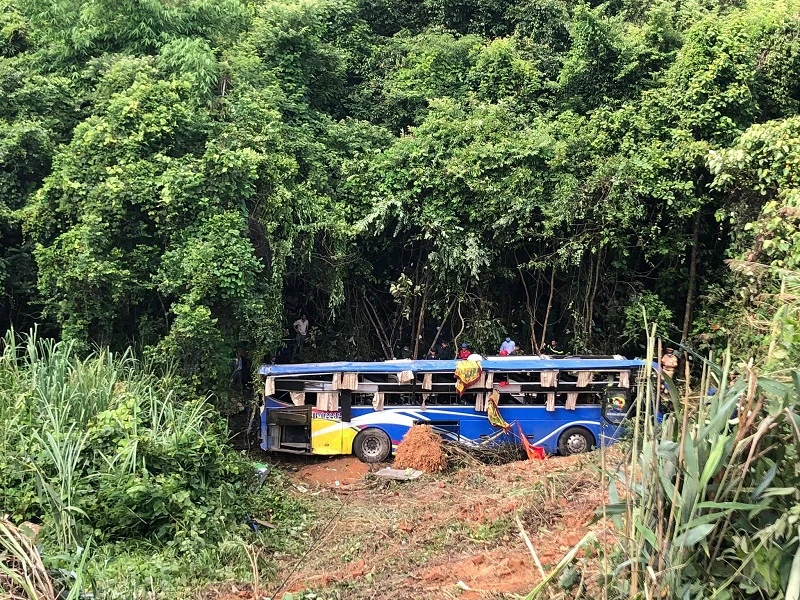 Khi đi đến đoạn đường thuộc đèo Ngọc Vinh (thôn Đắk Tang, xã Rờ Kơi, huyện Sa Thầy, tỉnh Kon Tum) thì xe khách mất lái và lao xuống vực sâu.