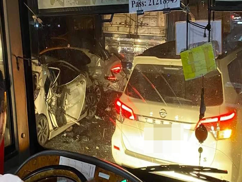 Tại hiện trường có 3 phương tiện hư hỏng nặng, 2 ôtô du lịch bị kẹp giữa 2 xe tải bị hỏng nát cả phần đầu và phần thân sau xe. Vụ tai nạn đã làm một số người trong hai ôtô con bị thương nhẹ và đã được những người khác đưa ra khỏi xe an toàn.