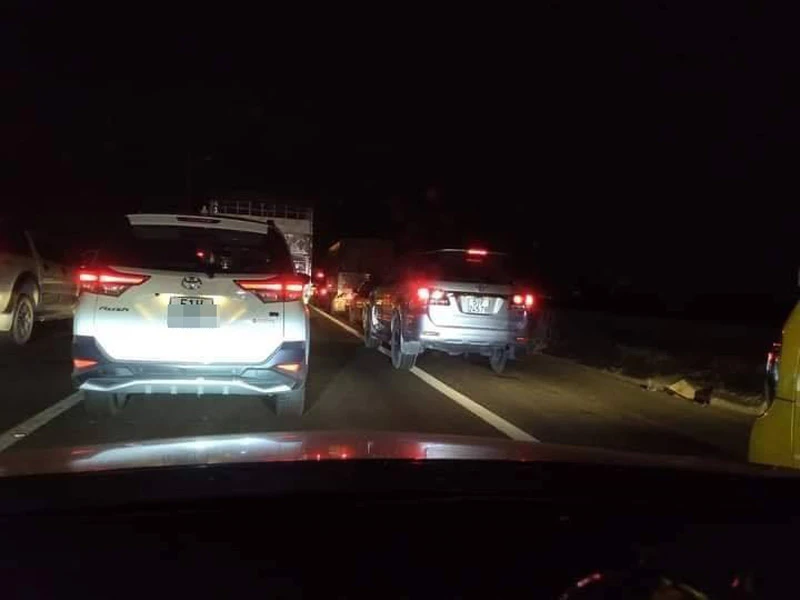 Vụ TNGT khiến cao tốc kẹt xe kéo dài hơn 10km trong đêm. Ảnh: CTV