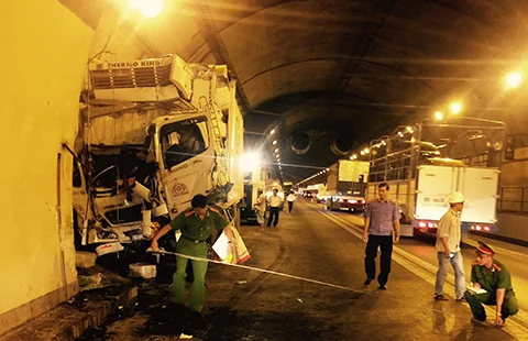 Hiện trường vụ tai nạn trong hầm đường bộ. Ảnh: TT